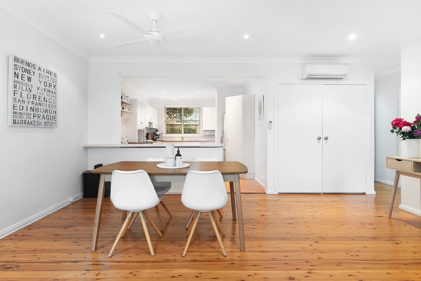 - Open-plan living with natural light and stylish floorboards